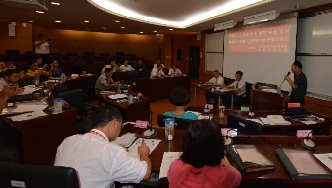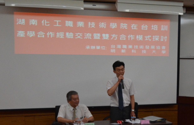 7月17日上午,“产学合作经验交流暨双方合作模式探讨交流会”于台湾明新科技大学管理学院哈佛讲堂举行。我院21名全体研习班成员及明科大相关管理人员、台湾职业技术发展协会秘书长郭莉女士、中国化学制药股份有限公司李黄佑厂长出席了会议。明新科大秘书室主任秘书李荣泰教授及我院易卫国副院长分别致辞。