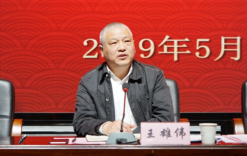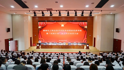 党委副书记、校长王雄伟教授在会上的动员讲话激情澎湃,他首先指出学校2019年工作开局有力,成绩斐然。新学期务虚会上,党委、行政科学谋划、统筹布局,在全体化院人的共同努力下,学校各项事业有声有色。3月,中国高等教育学会公布数据,我校在“全国高职院校教师教学竞赛状态数据”中列全国第12名、湖南省第1名;3月,学校招收巴基斯坦首届留学生;4月,学?;癯邪烊≈耙翟盒=萄芰Υ笕矢?;4月,学校连续五次获评湖南省普通高等学校就业创业工作“一把手工程”优秀单位;4月,学校单招录取第一志愿新生3990人,比去年增加2390人,创历史新高;4月,学?;?019年全国职业院校技能大赛化工生产技术赛项赛点资格;4月,学?;衿廊缪翱占溆τ闷占盎疃判阊#?月,学校获协办2019-2021年全国职业院校技能大赛教学能力比赛资格;4月,学?;ど际?、工业分析检验等9个项目获参加2019年全国职业院校技能竞赛资格,比2018年增加了4个参赛项目;5月,学?;衿廊「咝5辰üぷ鞅旮嗽合怠⒀逯Р考啊八啡恕北瓯?、党务工作示范岗、青年教工党员示范岗各一个。成绩的取得绝非偶然,王雄伟表示,化院人都在努力奔跑,化院人都是追梦人。争创国家优质学校暨“双高计划”建设项目是时代赋予每一位化院人的使命,化院人既不能目中无人,亦不可妄自菲薄,全校上下要以坚如磐石的信心、只争朝夕的劲头、坚韧不拔的毅力,一步一个脚印,啃下这块硬骨头,用响当当的成绩回馈社会。最后,他就争创国家优质学校暨“双高计划”建设项目向与会人员提出三点要求:一是要统一思想,抓住机遇;二是要真抓实干,内涵发展;三是要立鸿鹄志,做奋斗者。