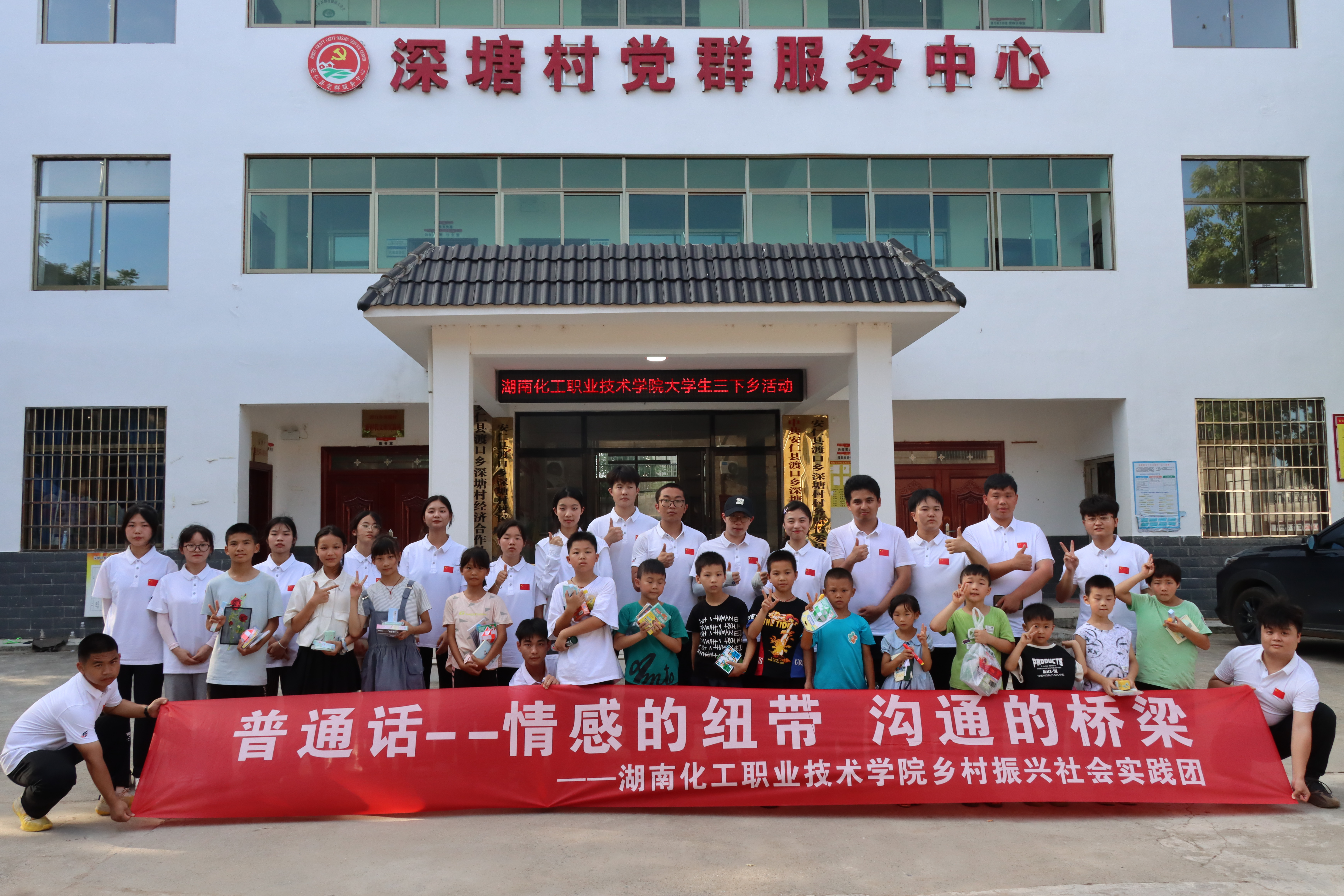 根据教育部语言文字应用管理司《关于开展2023年“推普助力乡村振兴”全国大学生暑期社会实践志愿服务活动的通知》(教语用司函〔2023〕9号)要求,7月5日—7日,湖南化工职业技术学院“推普助力乡村振兴”大学生暑期社会实践志愿服务团在湖南省安仁县渡口乡深塘村开展推普系列活动,助推深塘村实现新时代背景下的乡村振兴工作。