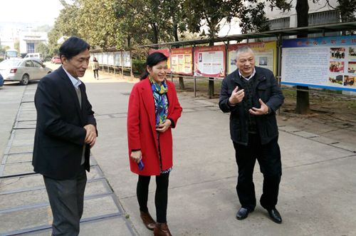 校长王雄伟和副校长隆平等与教职工进行交谈