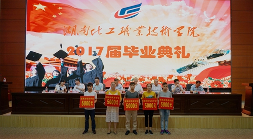 典礼上,石绍军宣读了我校2014级学生2015—2016学年度国家奖学金、励志奖学金获得者名单;游大庆宣读了湖南省2017届优秀毕业生名单。学校领导为获奖同学颁奖,并希望受表彰的同学锐意进取、戒骄戒躁、不断进步,在今后的学习与工作中再创佳绩。