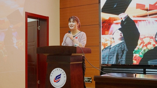 分析1411班李浩浩同学作为毕业生代表发言。她讲述了自己在化院三年的成长故事,回想那年师生一同在学校后山种下的小树苗,现已茁壮成长,即兴作诗一首:“花开满山坡,情谊深又多;学子校园过,青春无蹉跎?!备卸饔谀感5脑耘唷?/p>