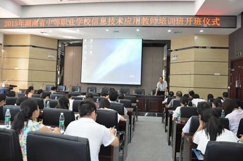 这是今年暑假省信息技术应用教师培训班第二批开班了,开班仪式主持人为教务处副处长田伟军。第一批在8月3日结束,第二批8与5日开班。同样是为期10天,不同的是第一批108人基本是外校老师,尽管培训过程中有这样那样的意见和要求,但是培训结束时,对于我院举全院之力承办的培训班都给予了高度评价,尤其是对培训教师的敬业精神和专业能力,给予了盛赞。第二批学员50多人中有将近一半是本校老师。在网上看到副院长隆平教授留言说第二期培训班还有10个名额可以添加时,我院许多老师不顾酷暑,纷纷报名,一时教务处收到报名申请都深感为难了。学院信息化教学取得的成绩,带动了学院广大教师信息化教学改革的热潮,也激发了广大教师的求知欲望和专业学习热情。为此,进行培训的老师针对学生情况,修改了教学方案。(上图为督导室主任贺新元在给学员做开班讲座。)