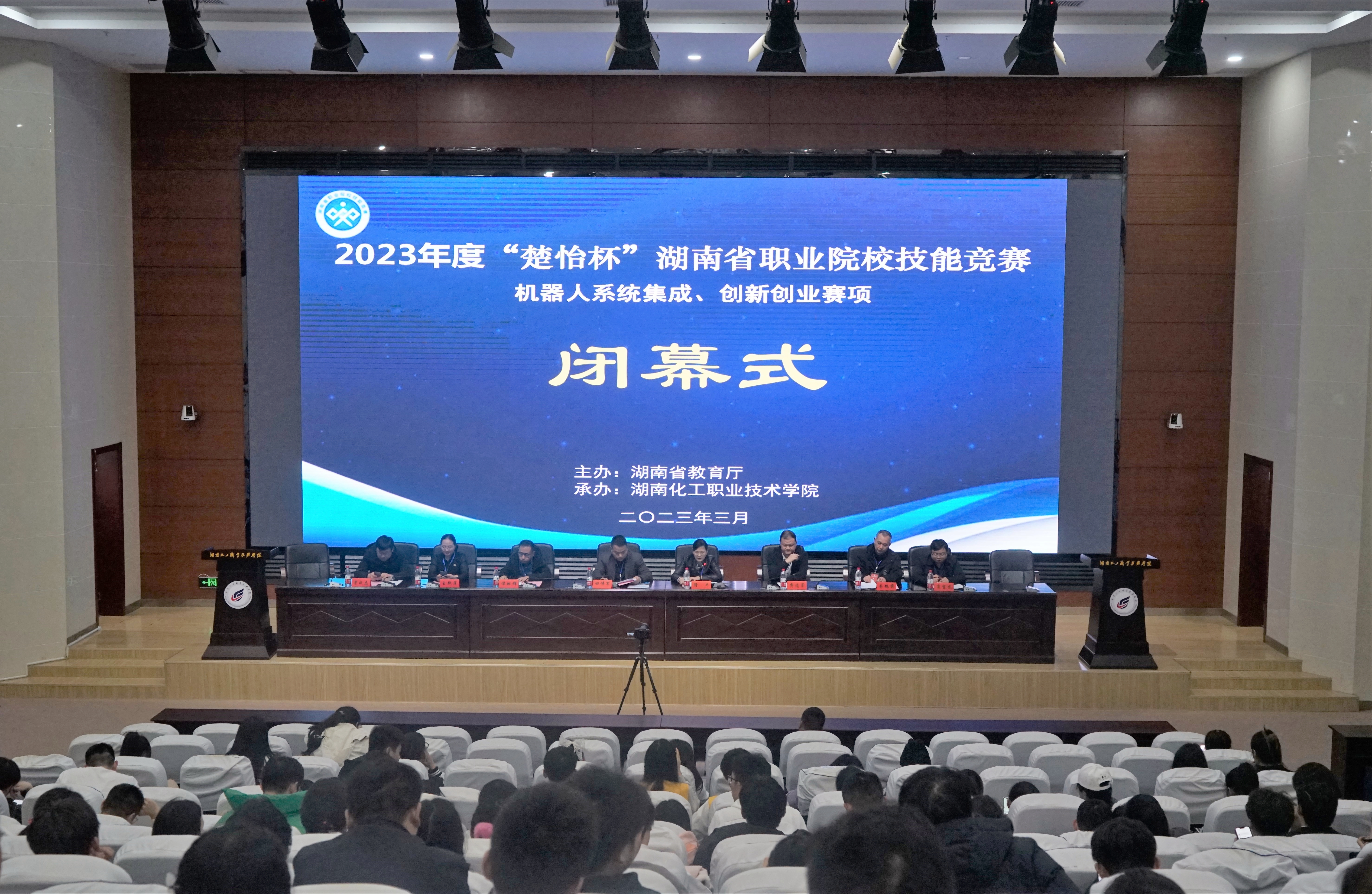 3月5日下午,2023年湖南省职业院?!俺奔寄芫喝咧案咦?/span>组机器人系统集成、创新创业两个赛项在我校图书馆二楼学术报告厅圆满闭幕。省派赛点第一副主任龚道崇,高职机器人系统集成赛项裁判长易端前,高职创新创业赛项裁判长谭贻群,高职机器人系统集成赛项省派赛项负责人肖望龙,高职创新创业赛项省派赛项负责人曾成志,赛点主任、湖南化工职业技术学院校长隆平,赛点副主任、副校长田伟军出席闭幕式。闭幕式由田伟军主持。