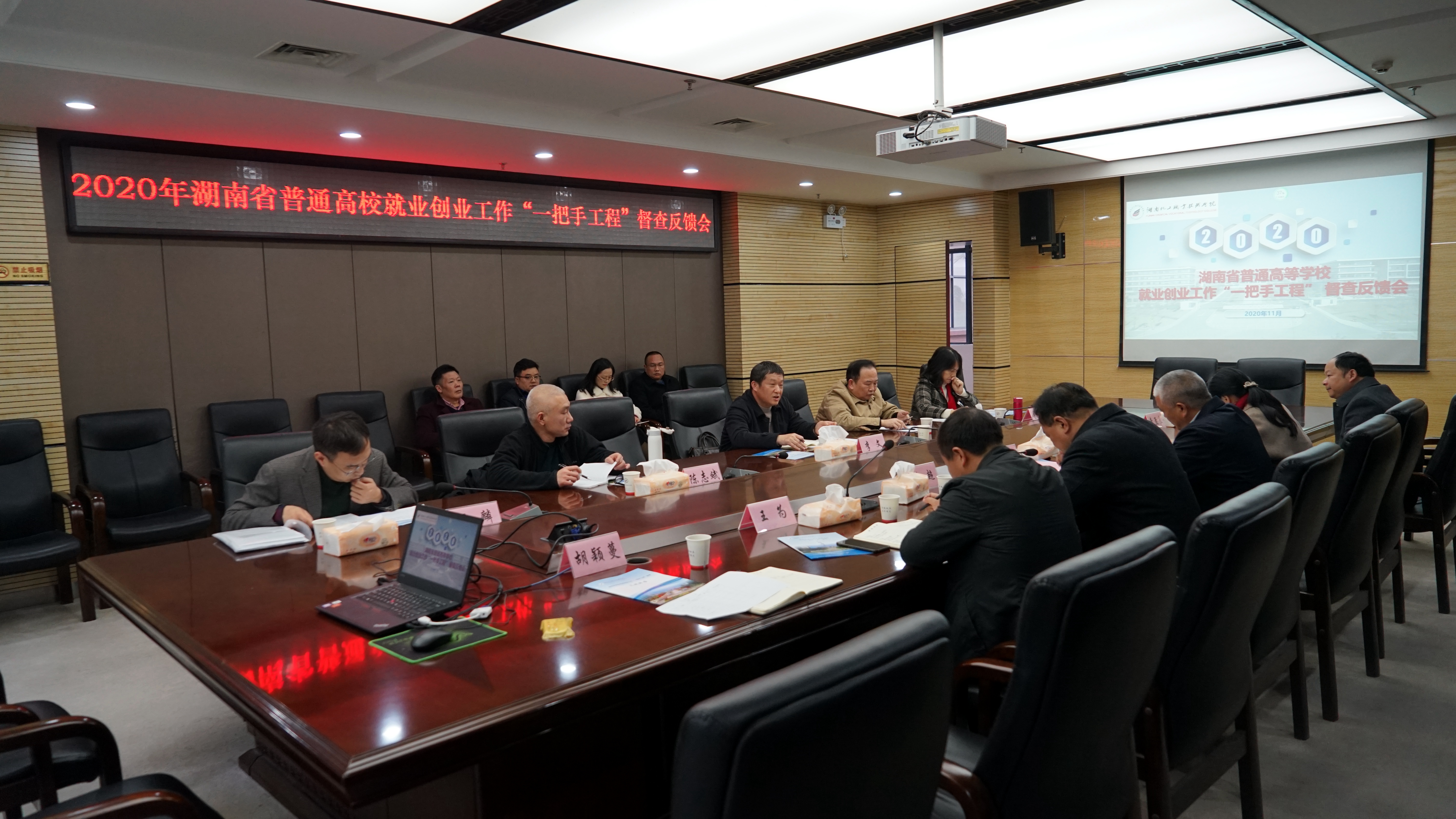 11月26日,以湖南理工学院副院长李文教授为组长的2020年湖南省高校就业创业工作“一把手工程”督查专家组一行莅临我校检查指导就业创业工作。根据督查工作总体安排,本次督查通过听取汇报、抽取就业创业工作人员进行政策知识测试、查阅资料、电话核查毕业生就业信息、召开学校就业工作人员座谈会、召开毕业生座谈会、察看场地、召开反馈会等方式开展。