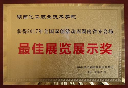 近日,湖南省双创联席会议办公室传来佳讯,我校喜获2017年全国双创活动周湖南省分会场“最佳展览展示奖”。