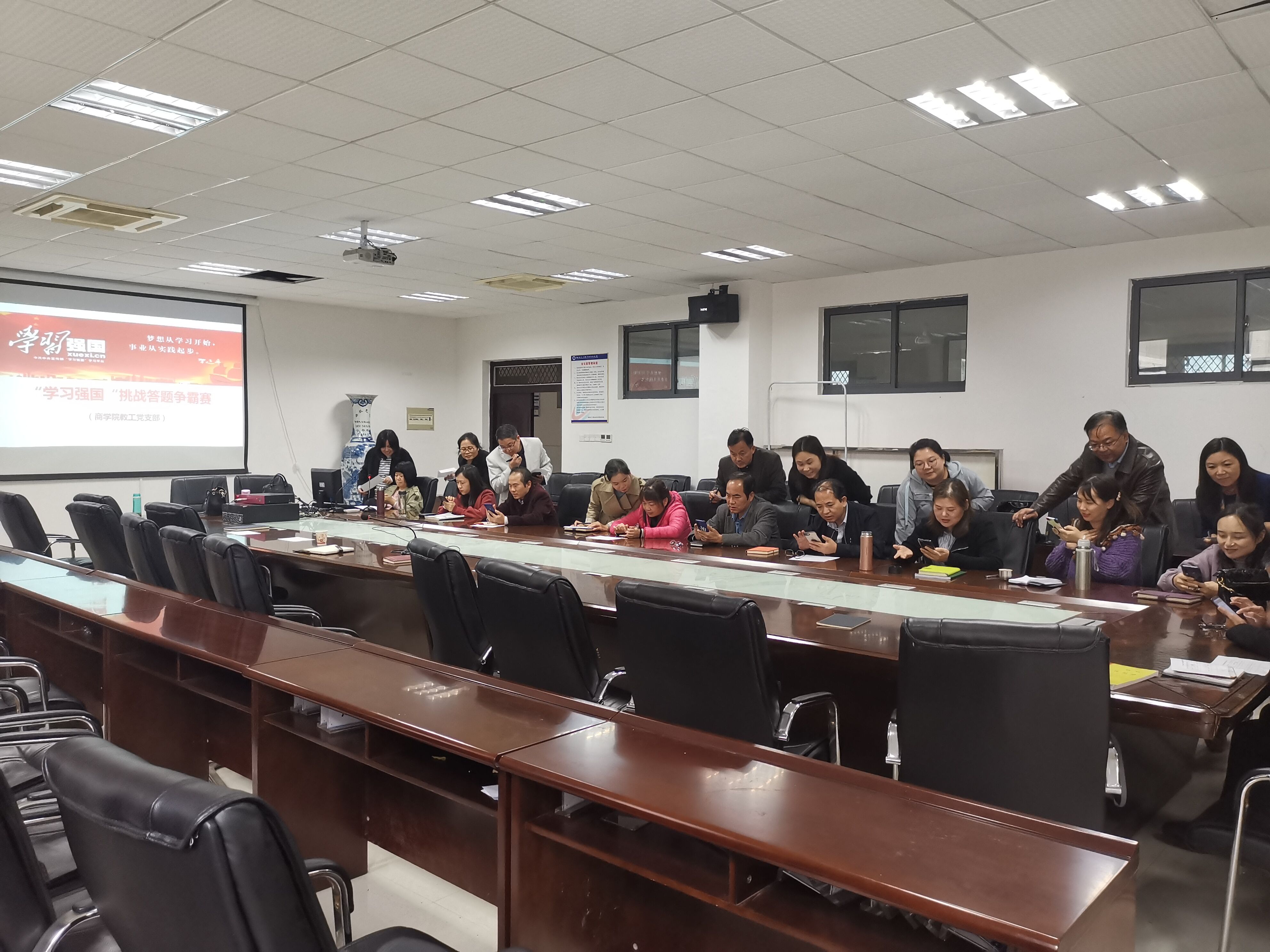 为深入学习贯彻习近平新时代中国特色社会主义思想,检验和展示“学习强国”平台的学习应用成效,创新活动形式,活跃支部氛围,商学院教工党支部于10月20日下午开展了以“‘学习强国’挑战答题争霸赛”为主题的党日活动。争霸赛依托“学习强国”学习平台“挑战答题”板块功能进行,以参赛选手在规定时间内答对题目数量多少论成绩,陈超校长以普通党员身份参加了活动。