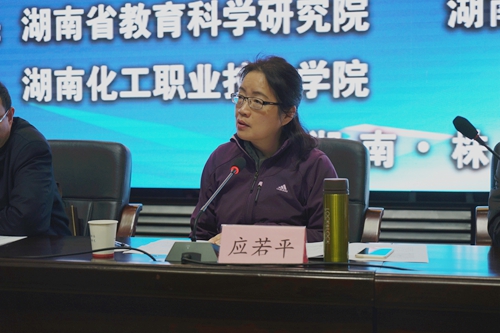 应若平副厅长在会上讲话,她传达了李克强总理12月2日在推进职业教育现代化座谈会上的重要批示,即要切实把职业教育摆在更加突出的位置,加快构建现代职业教育体系。坚持面向市场、服务发展、促进就业的办学方向,进一步深化改革创新,校企合作,积极鼓励和支持社会力量参与,努力建成一批高水平的职业学校和骨干专业。传达了12月12日陈宝生部长在现代职业教育发展推进会上用“香”、“ 亮”、 “忙”、“ 强”、“ 活”、“ 特”六个关键字对职业教育发展提出的明确要求,结合我省实际,就如何推进职业教育产教融合问题进行思考。