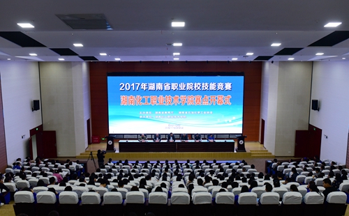 4月25日下午,由湖南省教育厅、湖南省石油化学工业协会主办,湖南化工职业技术学院承办的2017年湖南省职业院校技能竞赛湖南化工职业技术学院赛点开幕式在我校图书馆多功能报告厅隆重举行。赛点主任、我校党委书记刘望,省石油化学工业协会秘书长张健、省教育厅委派赛点第一副主任彭跃湘、省教育厅委派赛点巡视员彭文胜、省教育厅委派赛点联络员温宇及本次竞赛裁判员、参赛选手等近500人参加开幕式。我校校长王雄伟主持开幕式。