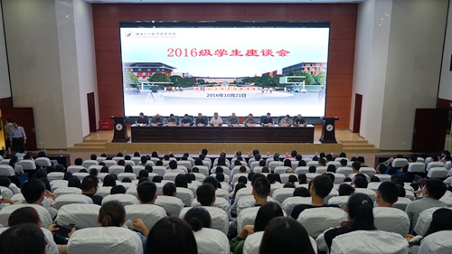 10月21日晚7点,学校在图书馆二楼报告厅召开2016级新生座谈会,校领导、相关部门负责人及师生代表等近500人参加了座谈会。分管学生工作副校长王为副教授主持座谈会。