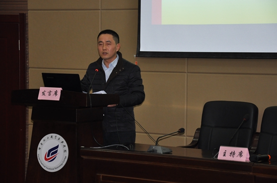 我院二级学院机电工程学院机电教研室主任、机电一体化技术专业负责人、副教授、高级技师、高级考评员、教育部职业教育与成人教育司职业院校仪器设备配备规范专家尹霞作了题为《顺应智能制造培养职业人才》报告。她从时代需要智能制造、智能制造拉动职业人才需求、我们的探讨与实践三个方面由浅入深地为大家讲述了如何顺应智能制造,培养职业人才。