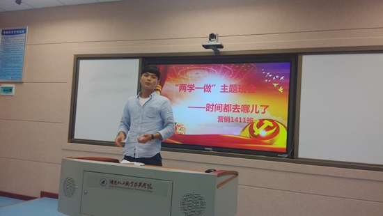 5月26日,营销1411班率先开展了“两学一做”实践主题班会,班会由谢浩同学主持。以“时间都去哪儿了”为主要线索,同学们通过多媒体展示、启发思考等形式,在优美的旋律中,大家回顾了自己在学习、生活、创业等方面,为自己算了一笔“时间账”、“亲情账”,感受时间的易失和可贵。有的同学和大家分享了在学习之余不断尝试创业,自力更生不断奋斗的故事;有的同学回顾了自己两年来在学习生活、学生会工作、志愿者工作、兼职工作等方面的收获;有的同学分析了自己在电脑游戏上花费大量时间,导致课程学习荒废重修、身体状况每况愈下的经历等等,大家的心灵受到了触动和洗礼,产生了思想共鸣,认识到了学习是大学生活中的首要任务。许多学生纷纷表示,要倍加珍惜在校学习的时间,勤奋学习,规划未来,为实现“人生梦”,“中国梦”而努力拼搏。