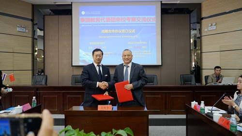 唐风国际教育集团总裁李劲松,泰国职业教育代表团团长帕克蒂,株洲市职职教协会会长杨宋虎分别发表讲话。随后,湖南化工职院与唐风国际教育集团签订了职业教育国际战略合作协议,双方将进一步进行国际教育云平台和智慧教学系统的对接,进行化工类、制药类、机电类专业教育标准与师资、课程的输出,包括平台课程共建、专业教师派出、泰方教师来华接收培养、专业课程泰国本土化等系列合作。