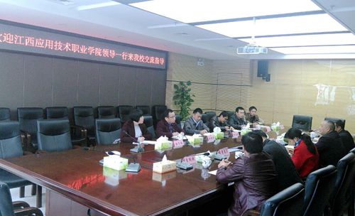 3月8日下午,江西应用技术职业学院李国清校长带领招生处副处长刘翔、材料学院院长胡孝贵及该院郭璇、张冬梅、罗六保等三位主任来我校交流考察,我校校长王雄伟、副校长隆平、副校长王为及化学工程学院院长童孟良、督导处处长贺新元、党政办副主任李纯斌、招生处副处长王迎胜等参加交流会并陪同参观考察。