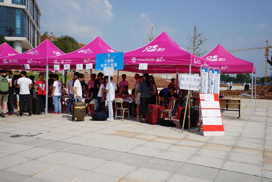 领取军训服、公寓用品等迎新工作点则设置在学生宿舍一栋,方便新生领取物资入住公寓。