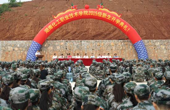 9月13日上午9点30分,我院2015级新生开学典礼在新校区篮球场隆重举行。全体院领导和各系部、职能处室主要负责人参加了开学典礼。大会由学院副院长王为副教授主持,党委书记刘望教授和院长王雄伟教授分别在会上讲话。晨风中,国歌嘹亮,国旗飘扬。3000多抹军绿组成的方阵以昂扬的姿态迎接着初升的骄阳,一股青春的力量在化工职院新校区篮球场上空喷张。