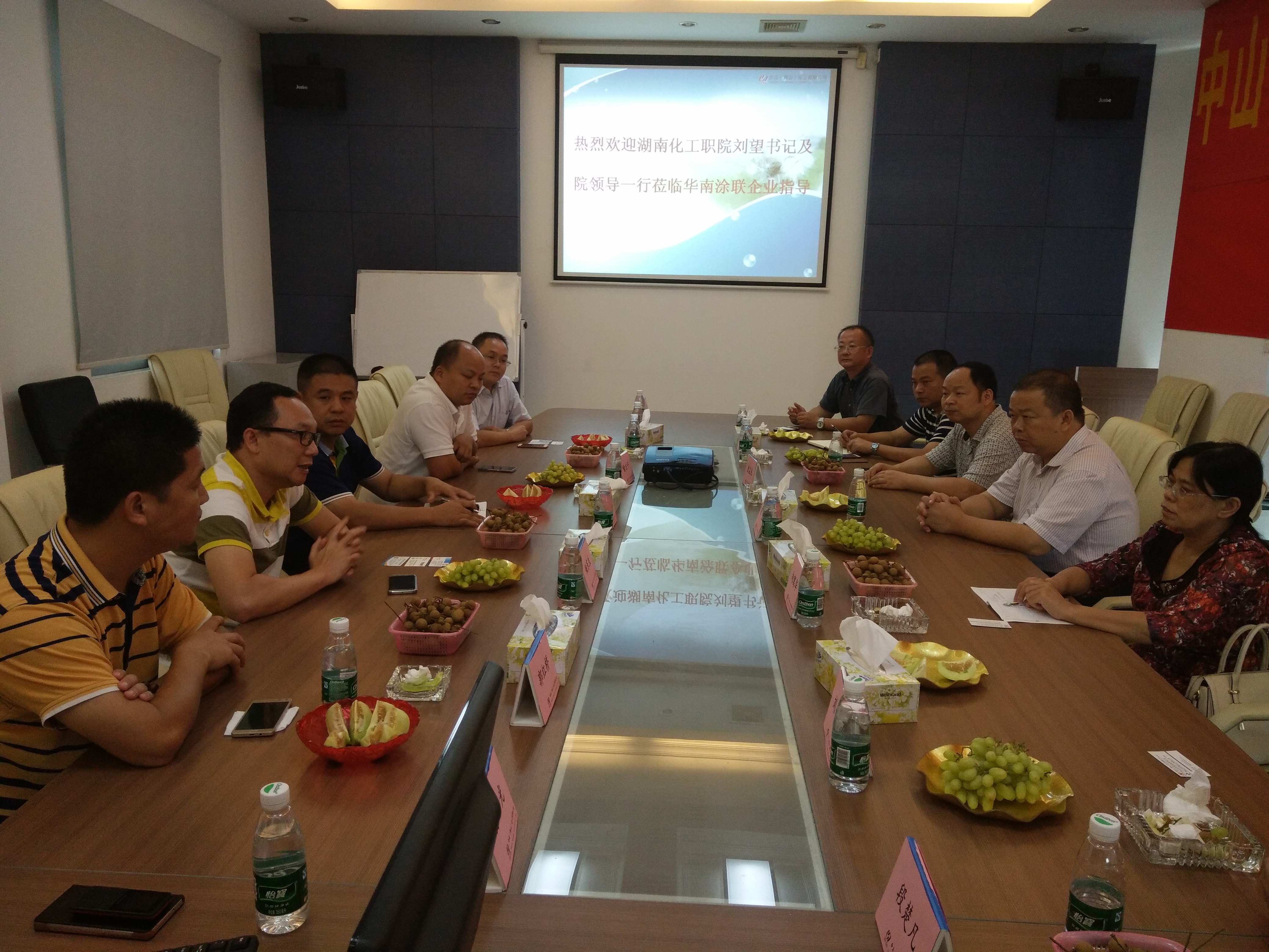 下午,刘书记一行赶赴佛山三水参观考察了合众化工有限公司,华南涂联校友分会部分校友代表喻方平、向大成、郭红桥、邓凯华、孙小光等陪同参观并参加了座谈。