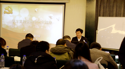 19日,我们踏着先辈足迹,秉承先辈遗愿,为丰富与深化红色教育主题活动,深入贯彻学习党的十九大精神,副校长易卫国同志作了《学习贯彻党的十九大精神》专题辅导报告。他从不同角度为与会同志划出了十九大精神的学习重点。他强调,学习宣传贯彻党的十九大精神,是当前和今后一段时期的头等大事和首要政治任务,全体党员同志必须认真学习、深刻领会、坚决落实。