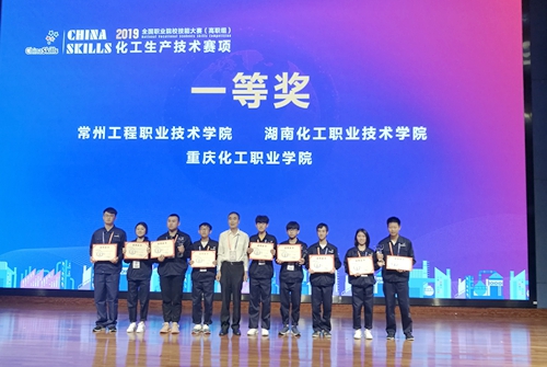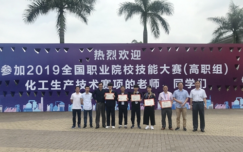 5月17日,2019年全国职业院校技能大赛(高职组)化工生产技术赛项在广东轻工职业技术学院落下帷幕。我校选手与来自26个省、市、自治区的61个代表队183个选手同台竞技,荣获一等奖(团体总分第二名),蝉联三连冠!为“优质?!焙汀八呒苹痹偬砼夭?!