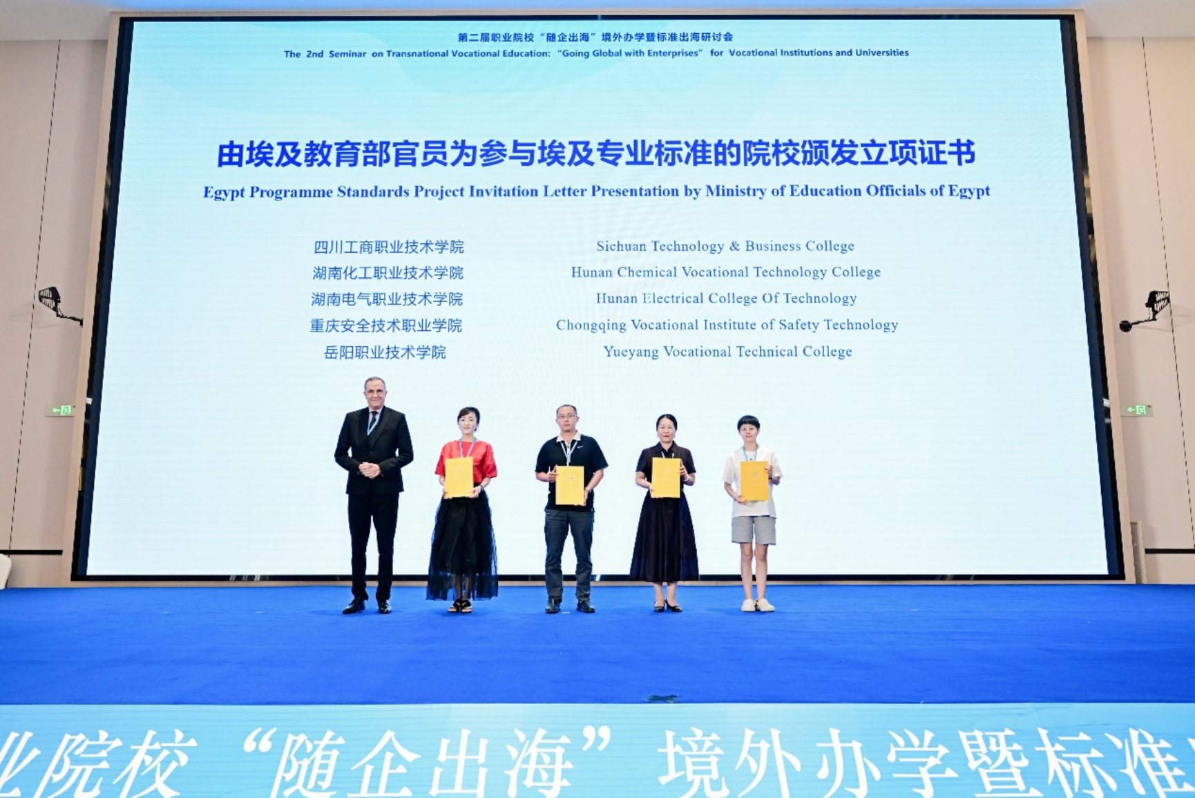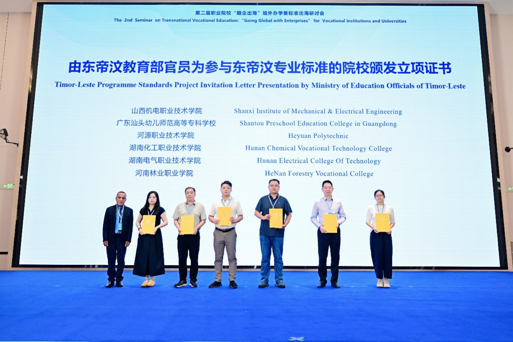 大会期间,我校积极推进政行企校多方共赢的国际交流与合作,与老挝国立大学达成合作办学项目意向,获授“一带一路‘中文+职业技能’培训中心”牌匾,成功立项埃及、东帝汶两国国家专业标准,启动建设中欧技能发展中心等。这些成果标志着我校在“政行企?!毙平式涣骱献鞣矫媛醭黾崾挡椒?,为服务"一带一路"倡议提供了新的平台支撑。