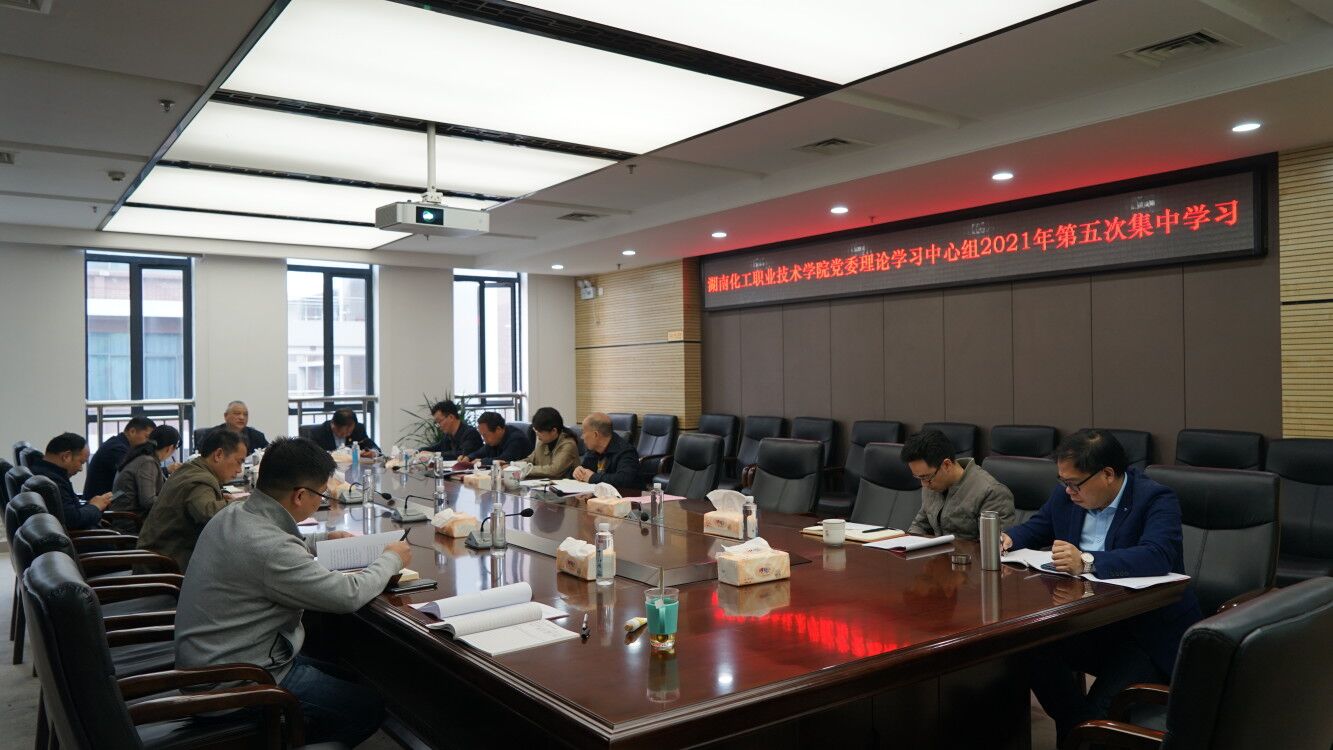 4月25日,湖南化工职业技术学院党委理论学习中心组在行政楼三楼会议室举行2021年第五次集体学习会。学校全体党委委员参加学习会,党委书记王雄伟主持学习会并讲话。