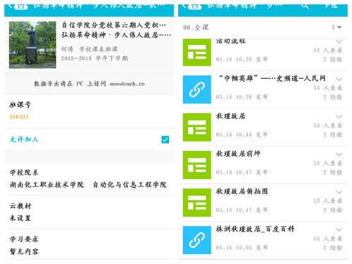 为提高学习效果,增强实践活动的互动性,本次课程采用蓝墨云班课为教学辅助工具,从手机平台上指导大学生实践活动、规范大学生行为??吻埃ü赌瓢嗫畏⒉记镨馊偈录?、秋瑾故居介绍、活动流程及注意事项、作业活动,充分调动学员们参与活动的兴趣??沃?,学员们走进陈列馆瞻仰秋瑾事迹。通过墙壁上那一首首慷慨激昂的诗、那一幅幅承载着历史的图片,再加上讲解员声情并茂地还原历史,让学员们对这位中华民族的巾帼英雄有了进一步的了解,并感同深受到那个时代革命先驱的燃情岁月??魏?,学员们将本次实践教学活动的心得在蓝墨云班课中进行互动交流。