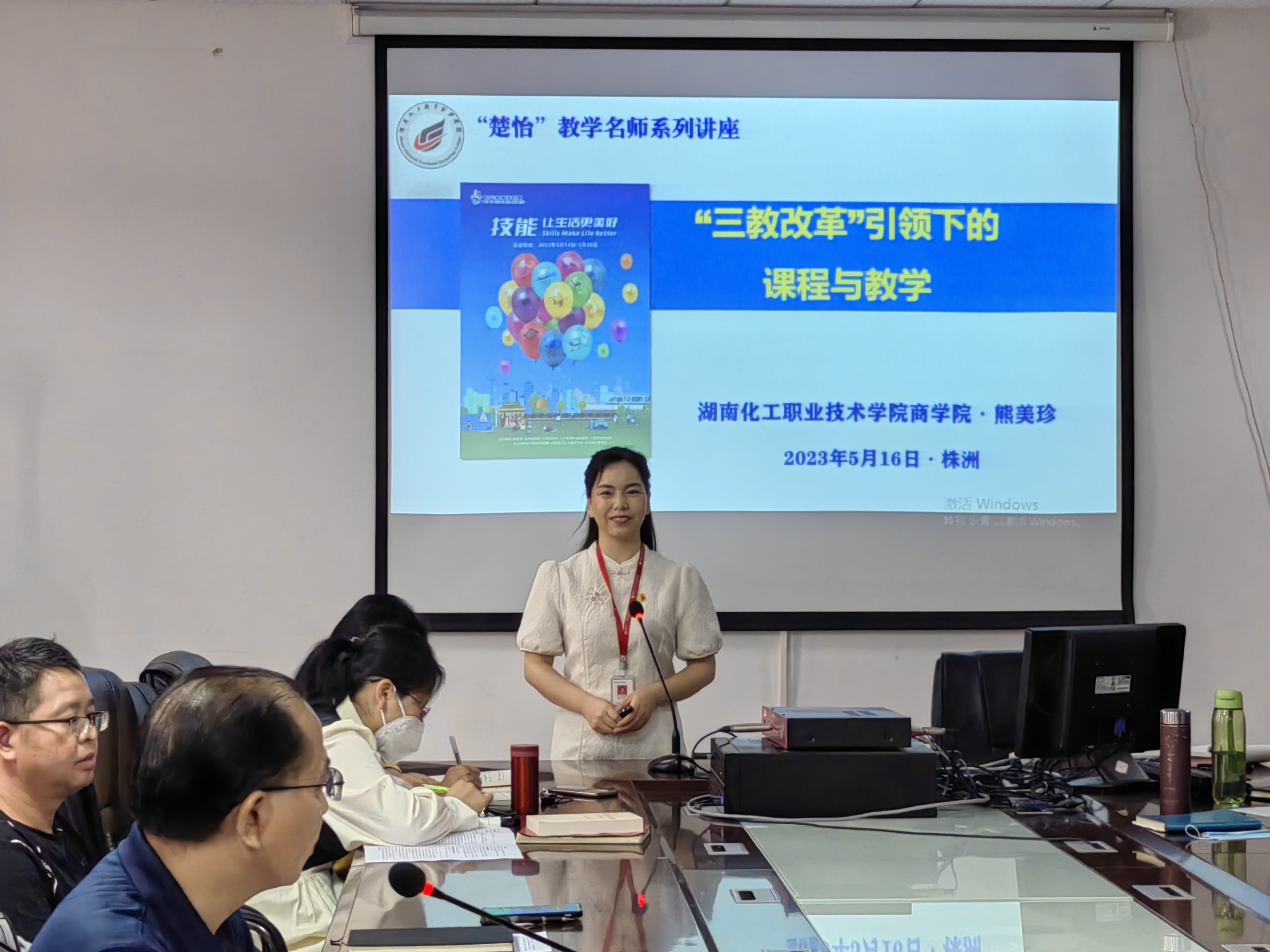 为进一步落实湖南省教育厅《关于做好2023年湖南省职业教育活动周相关工作的通知》(湘教通〔2023〕120号)精神和学校职业教育活动周方案要求,商学院聚焦深化“三教”改革,同时用名师专业之长、教学之策、成长之路,引领带动、示范辐射全体教师,5月16日下午,熊美珍教授在励志楼135为全体教师作了《“三教改革”引领下的课程与教学》专题讲座。