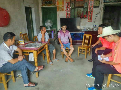 7月30日,转战杨梅山镇枧坪村继续开展工作的第一天,烈日和暴雨依旧同在。与村支书就本村基本情况进行交淡后,我们再次出发。