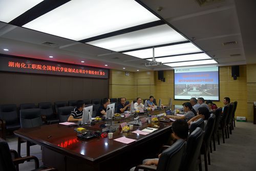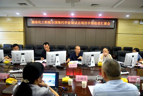 根据教育部《关于做好2019年现代学徒制试点年度检查和验收工作的通知》和《教育部办公厅全面推进现代学徒制工作的通知》的文件精神,8月5日上午9点,以长沙航空职业技术学院院长朱厚望为组长,湖南安全技术职业学院副院长周劲松、湖南汽车工程职业学院项目办主任易启明、湖南铁道职业技术学院二级学院副院长陶艳、湖南科技职业学院团委副书记李阳为成员的专家检查组莅临我校,对我校承担的教育部第三批现代学徒制试点项目的实施情况进行了现场检查。学校党委副书记、校长王雄伟和副校长隆平出席了中期检查汇报会,化学工程学院副院长唐淑贞、教务处副处长罗源、财务处副处长王冬平、长沙市紫?;ㄍ苛嫌邢薰咀芫碇砝钍髌家约安糠纸淌Υ聿渭恿嘶惚ɑ幔嵋橛筛毙3ぢ∑街鞒?。
