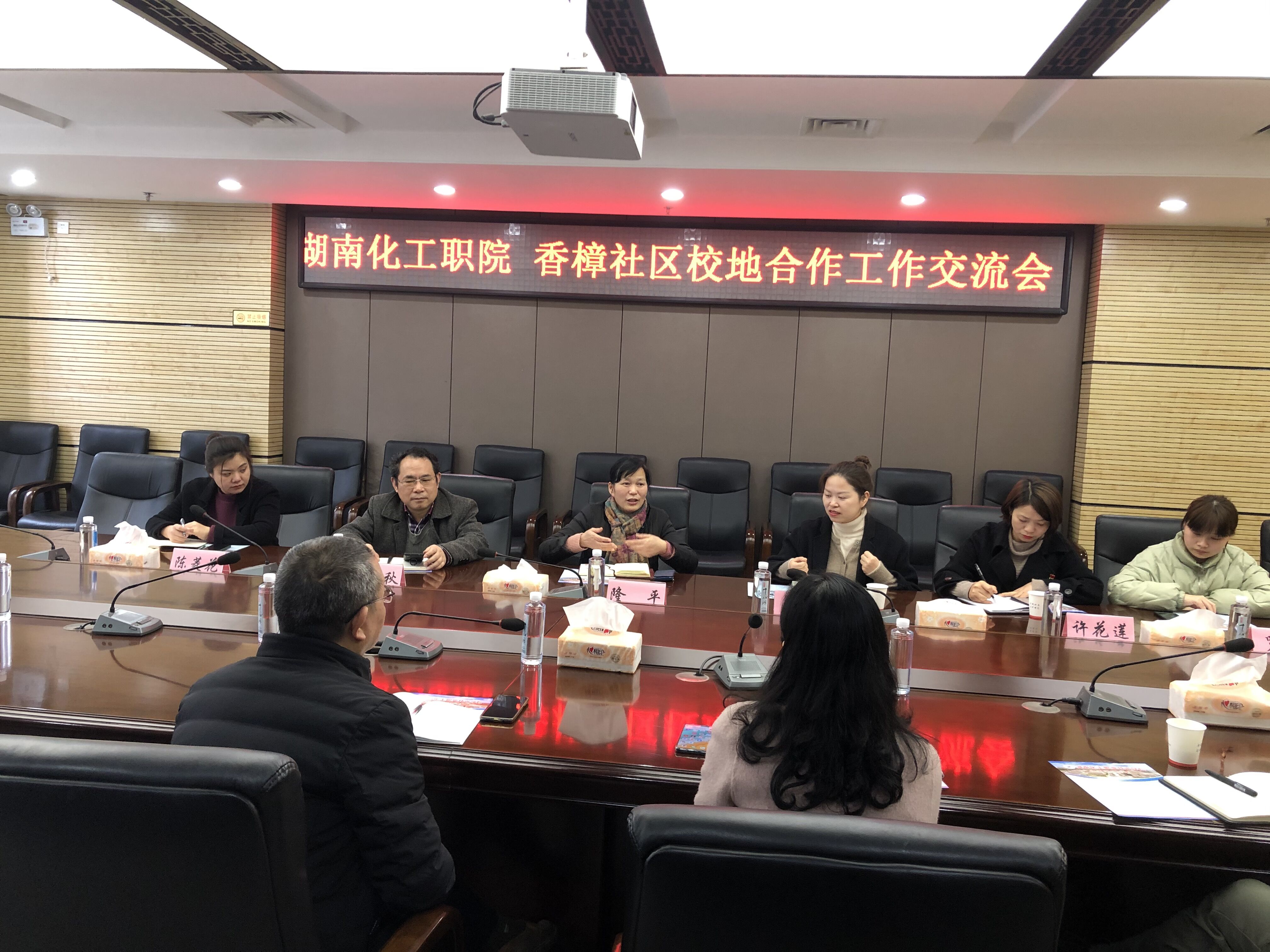 为了落实学?!八摺苯ㄉ枞挝?,进一步加强党的建设,提升服务社会能力,3月9日上午,学校与云龙示范区学林街道香樟社区党支部在学校行政楼三楼会议室举行了校地合作工作交流会,就进一步打造学校与学林街道香樟社区党建联盟特色合作共建品牌,促进学校与社区的党建工作、社会服务工作深度融合进行了深度交流。学校副校长隆平、组织部长张麦秋、成人教育与培训处处长刘志峰、基础课部主任莫兼学、基础课部副主任覃东君、团委副书记刘秀娟,香樟社区党支部书记文玲、支部委员陈菱花、许花莲等参加此次交流会?;嵋橛烧怕笄镏鞒帧?