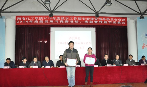 党委副书记石绍军宣读了2014年获得国家级教学成果奖、参加各级各类教学竞赛获奖以及指导学生参加各级各类技能竞赛获奖项目和名单。随后,学院领导对国家级奖项进行颁奖。