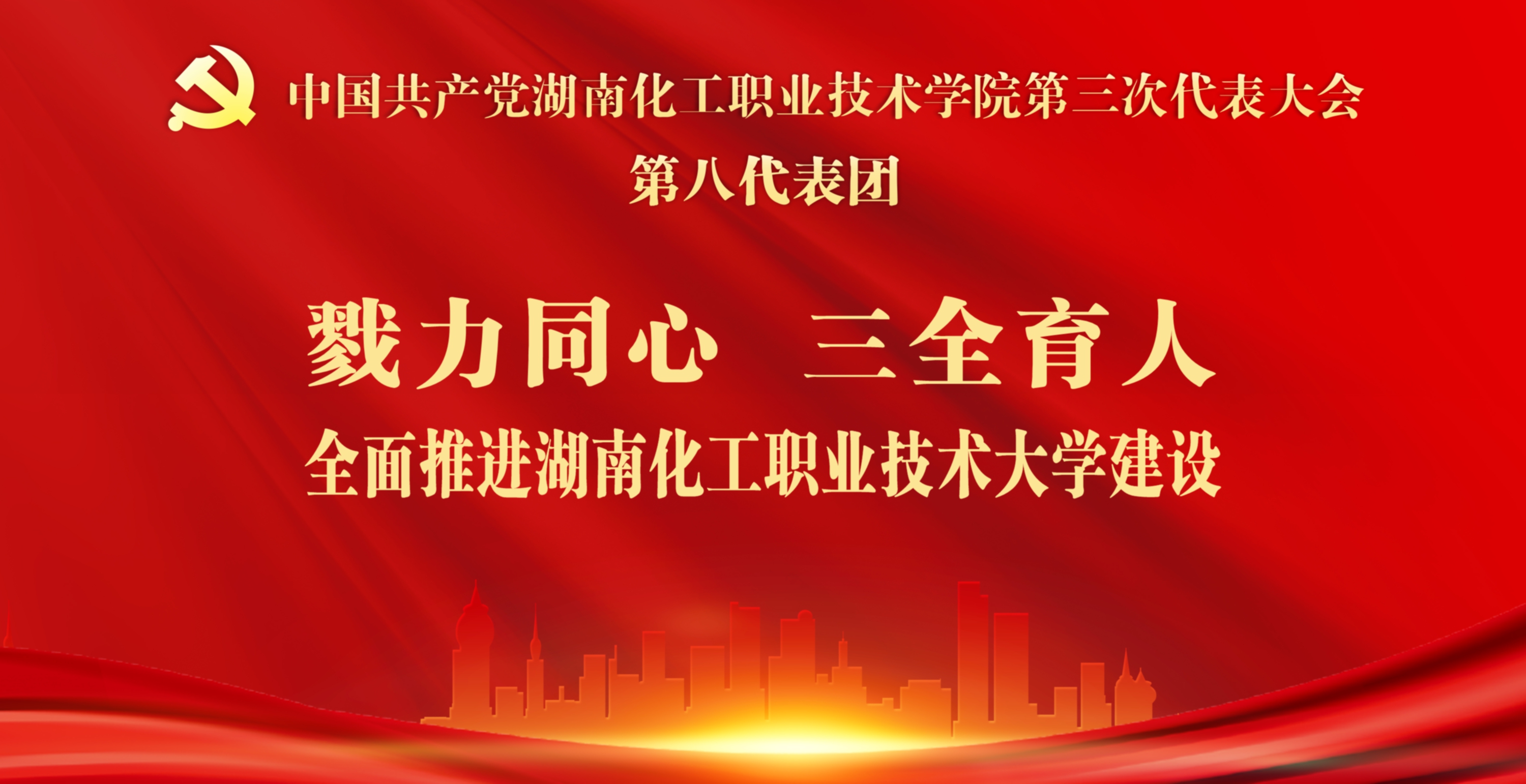 第八代表团的口号是:“勠力同心,三全育人,全面推进湖南化工职业技术大学建设”。各位代表将立足湖南化工职业技术学院已有的教育、教学、科研、管理、服务基础,在面向未来发展的新机遇和新挑战中,为推动高质量的职业技术大学建设建言献策。