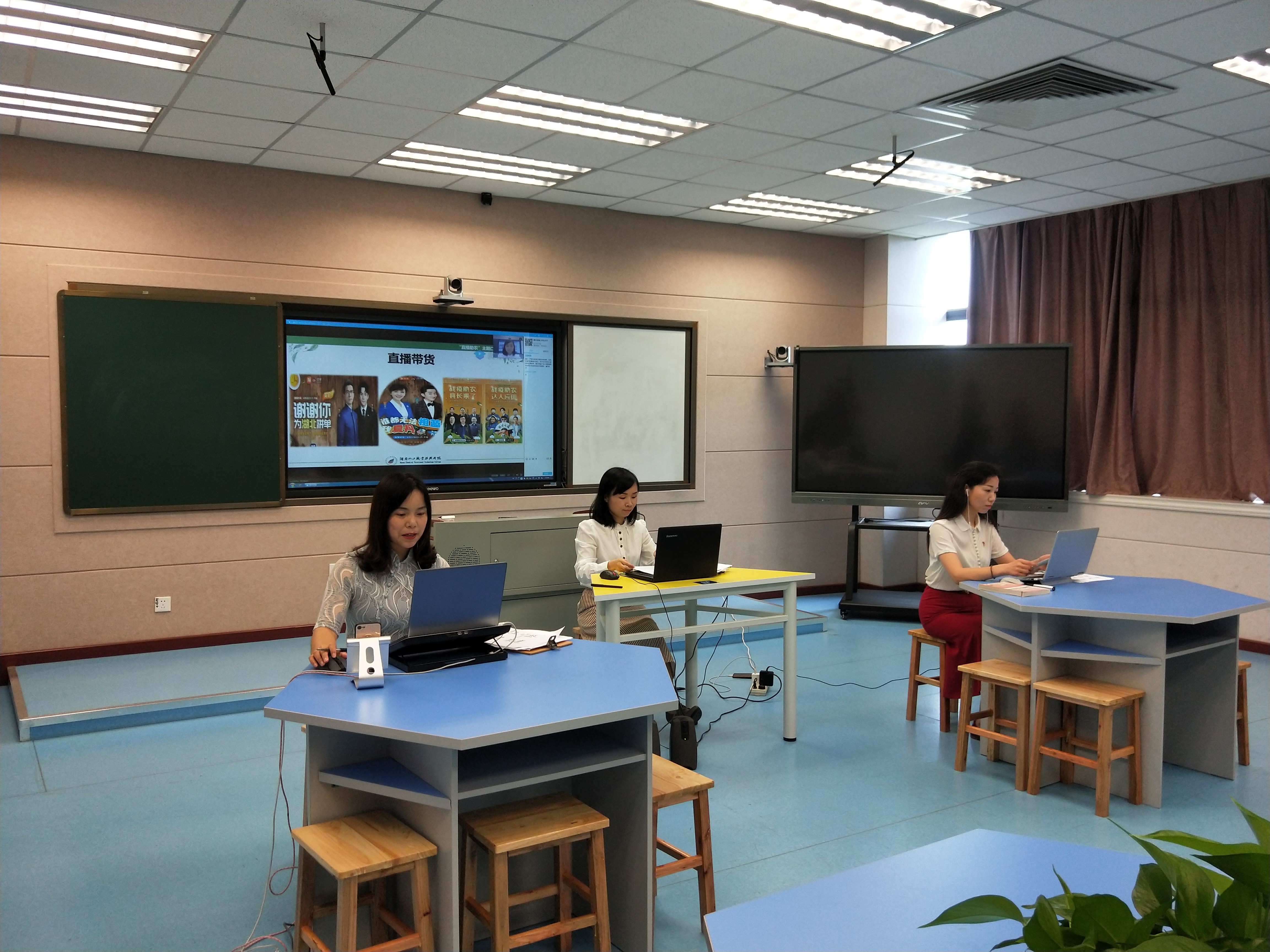 5月26日,湖南化工职业技术学院语文课教师邓滢,市场营销专业课教师熊美珍,思政课教师李菡共同给化妆品经营与管理专业的大一学生们上了一堂大学语文“直播助农”主题口语综合实践活动课,同时也是一堂“三师课堂”线上教研语文公开课。