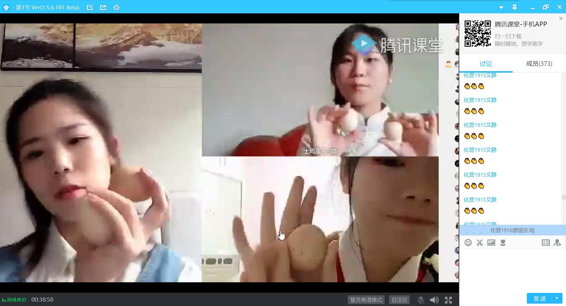 李丹、姚子慧、白婷同学是第二组线上带货的团队,她们共同为李丹奶奶家的土鸡蛋代言,“山外青山楼外楼,土鸡蛋营养不用愁”是她们的带货宣言。李丹说,土鸡蛋的养殖地是在老家扯竹村,因为今年疫情的缘故,导致了该村村民还有奶奶家的土鸡蛋堆了货,无法销售,越来越挣不到钱,就想到用直播带货的方法来为奶奶销售土鸡蛋。她带领大家认识土鸡蛋和普通鸡蛋的区别,并在直播现场煎鸡蛋。