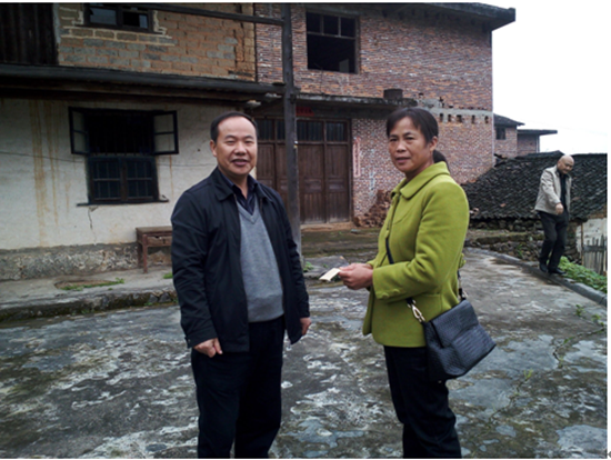 王为副校长与贫困户交流、积极了解他们生产生活中出现的问题