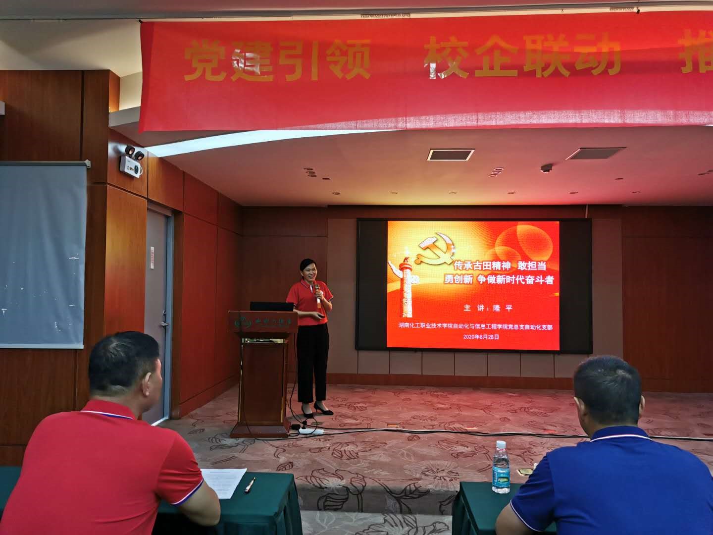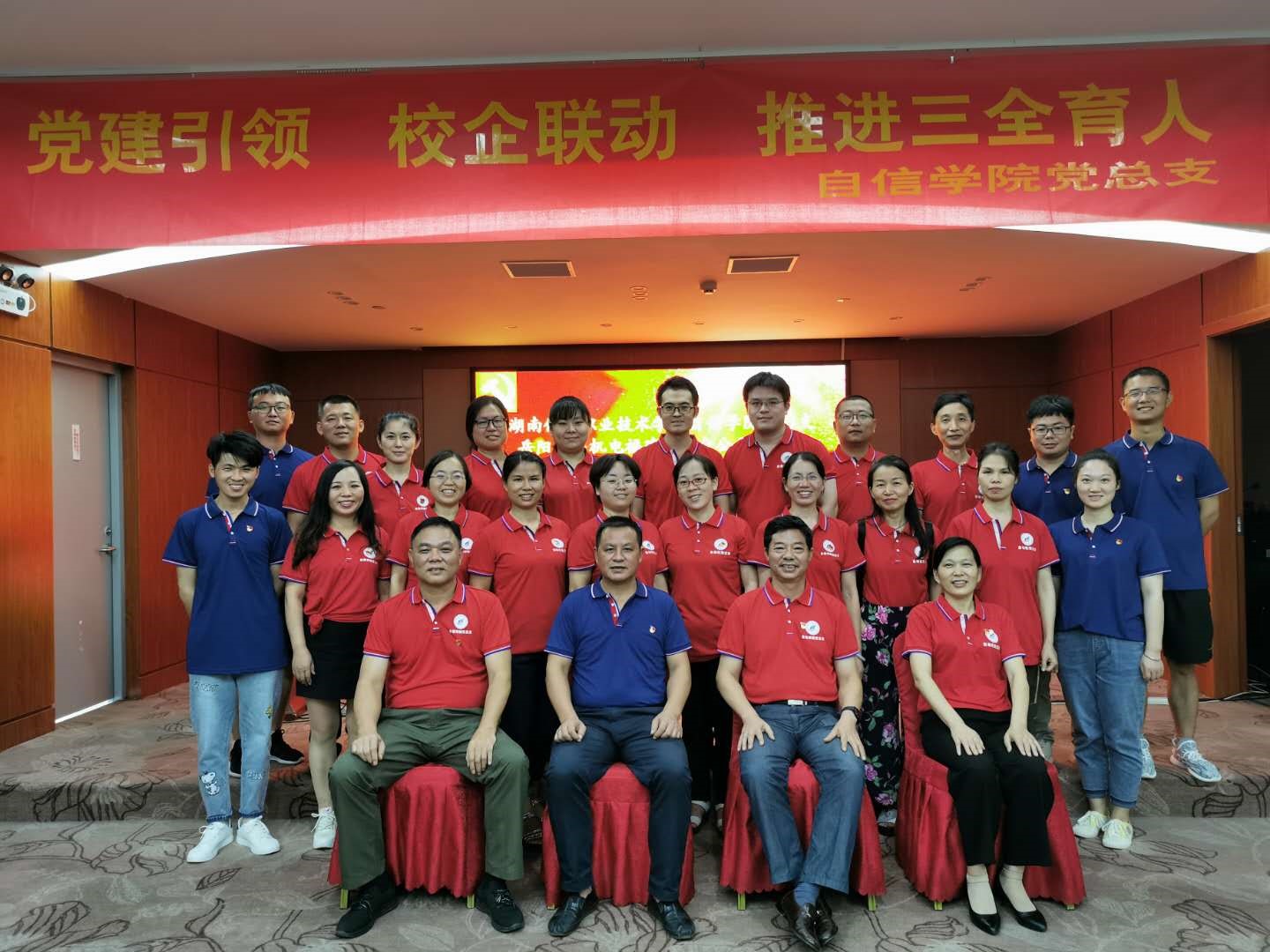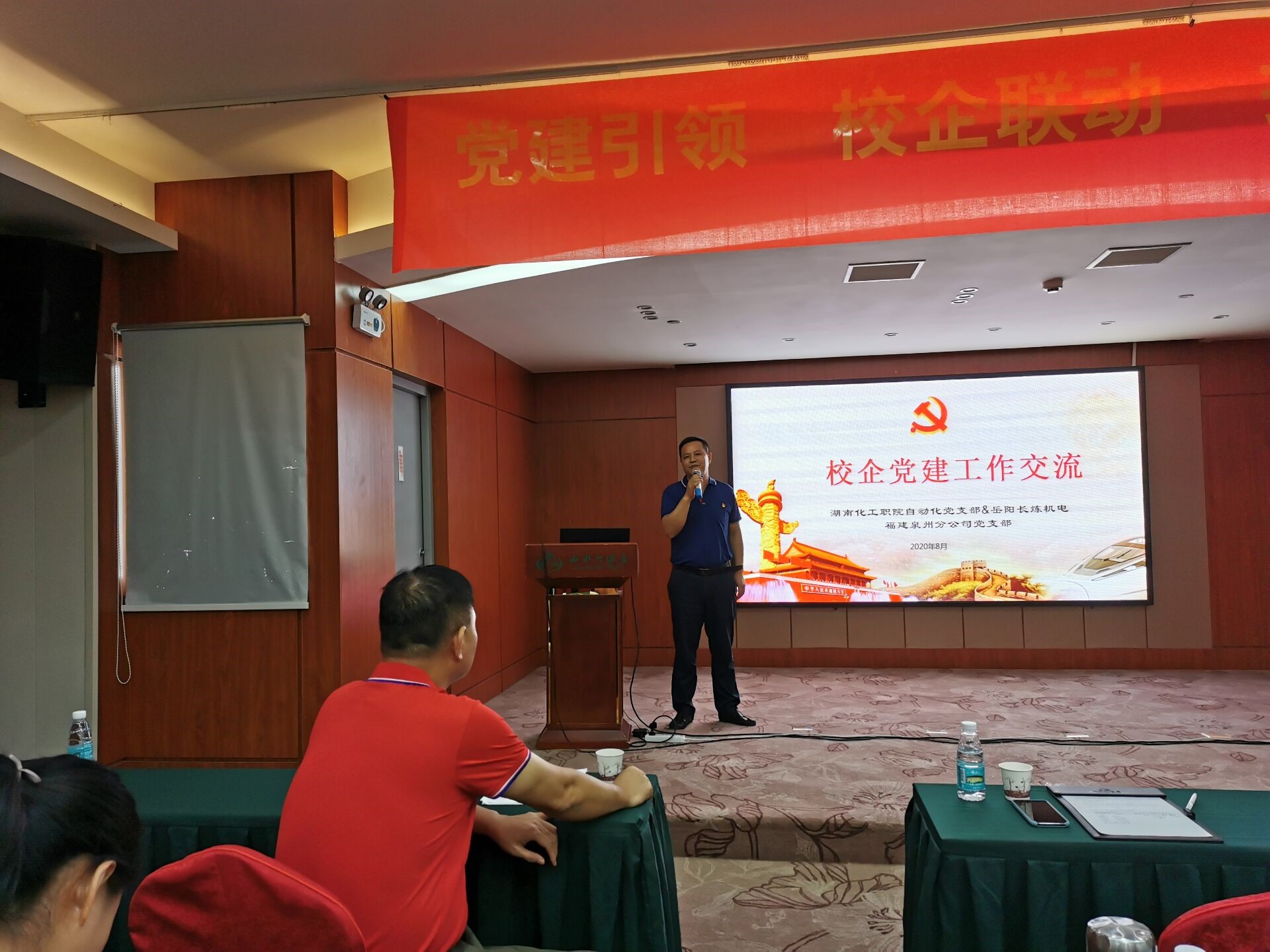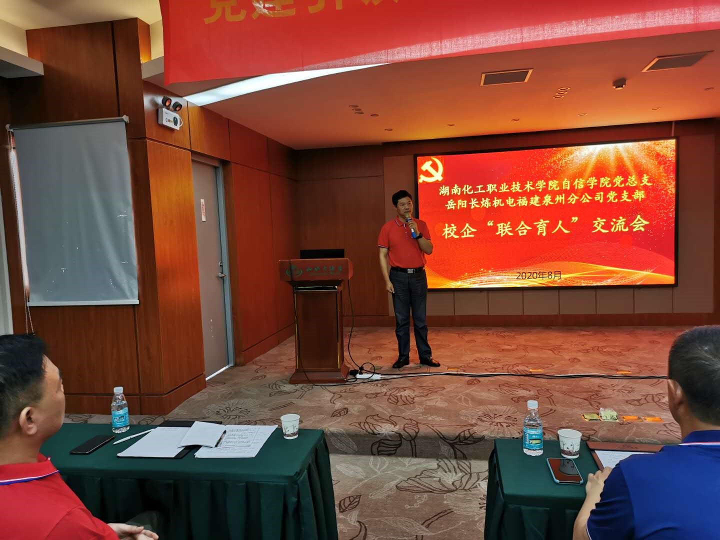 为充分发挥基层党建的核心引领作用,贯彻《国家职业教育改革实施方案》,深化“三全育人”改革,落实立德树人根本任务,8月28日至30日,由学校党委副书记刘毅、副校长隆平带队,自信学院党总支二十余名党员来到岳阳长炼机电福建分公司进行学习交流,福建分公司党支部书记兼副经理唐必江一行人热情接待。在本次的交流会上,双方就党支部结对共建、校企“联合育人”等方面展开了全面深入的交流探讨。