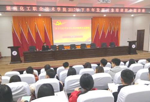 11月7日下午,学校党委副书记、党校校长刘毅在图书馆一楼二号报告厅为2017年下半年党员发展对象培训班全体学员讲授专题党课。
