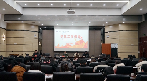 会上,学工部(处)处长朱海军简要总结了2018年学生工作。他说,在各二级学院和学生工作相关职能部门的共同努力下,我校学生工作平稳推进,取得了较好的成绩,学生管理进入全省十强校之列。去年整章建制,学生工作各项制度得到了进一步完善,各二级学院考核、辅导员班主任考核、宿舍管理员考核等各级各项考核全面推进,初步取得了良好的效果。通过加强辅导员培训、宿管员培训,启动奖惩机制,充分调动了各方面积极性,对学生工作起到了很大的推动作用。他就2019年学生工作主要思路进行了简要描述,并就近期工作进行了详细部署安排,要求逐级开会,部署开学三件事:清查人数统计数据、开主题班会抓学风建设、启动学业预警机制严格实行留级制。现在当务之急是补充完善学籍信息,及时上报省教育厅。同时,他要求各二级学院多关注北校区搬迁过来的学生宿舍安排、固定教室安排情况,发现问题及时处理、落实到位,提醒成绩不合格的学生及时参加补考。