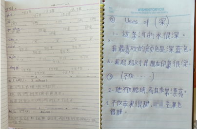 留学生认真完成何静老师布置的中文作业