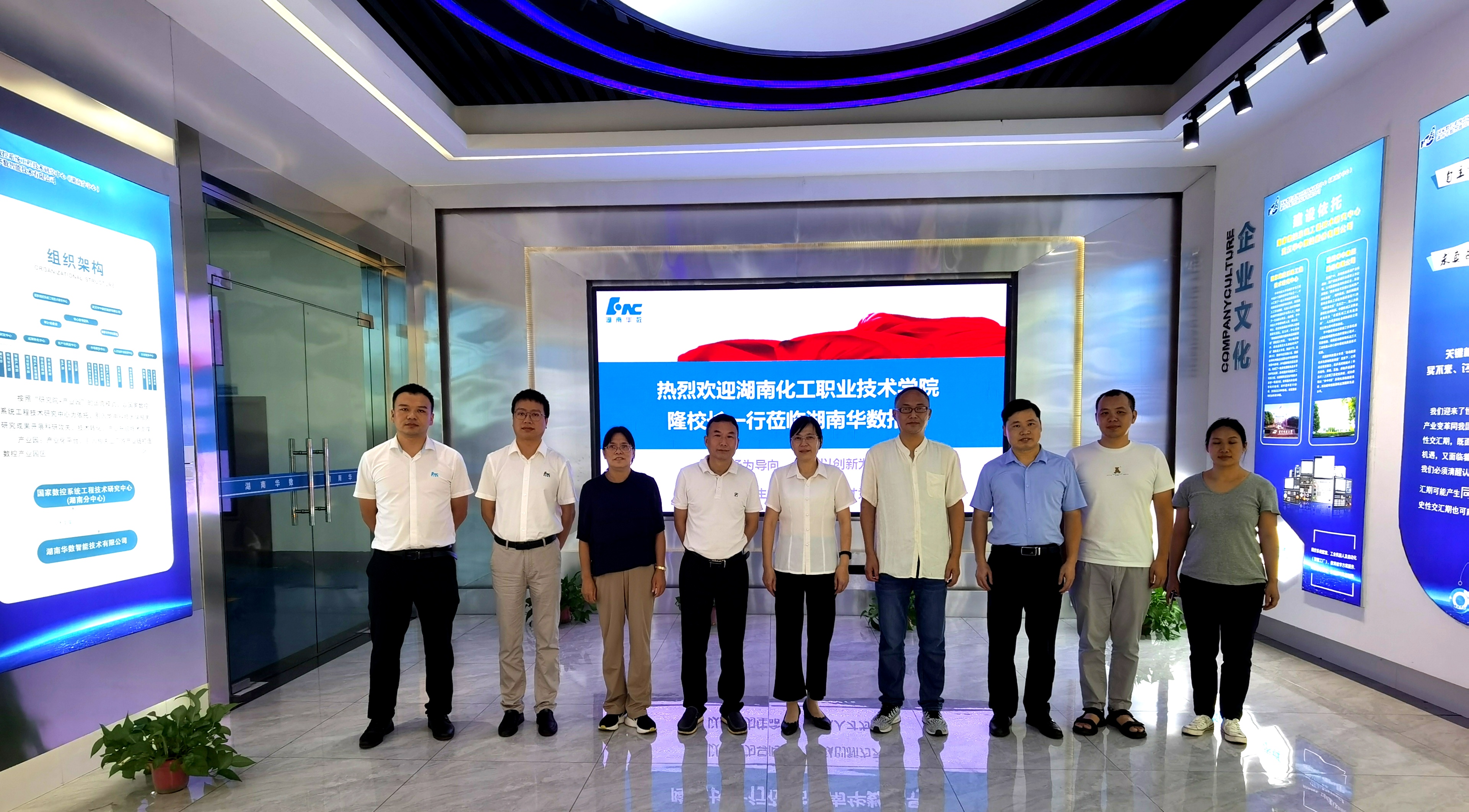最后,隆平一行来到了位于云龙区北斗产业园的湖南华数智能技术有限公司,机电院刘容、彭湘蓉等4位老师在数控多轴加工岗位上进行锻炼。该公司邓总、王总等领导对隆校长一行的到来表示了热烈欢迎,并带领大家先参观了一楼展厅,对公司的生产经营情况进行了介绍。随后隆校长一行来到二楼访问工程师们锻炼的工作室,看望慰问了正在锻炼的老师们,了解他们近段时间工作的内容,查看了他们自己动手编程并利用多轴机床加工出来的产品。随后大家一起在会议室进行了座谈交流,老师们表示本次到企业锻炼比一般的培训班针对性更强,企业安排专人指导,能更好地学习和掌握实用的技术。企业领导介绍了华中数控的发展历程,并对我国数控技术的发展,尤其是在打破国外技术垄断,提升我国智能制造水平方面做出的重大贡献做了深入讲解,对未来制造业由数字化向网络化、智能化及人工智能集成应用等方向发展做了展望。隆平对企业给予我校师资队伍建设提供良好平台表示了衷心感谢,对华中数控立足工业做教育的深厚情怀给予了充分肯定,希望今后能够进一步加强校企合作,进一步发挥企业在我校专业建设及人才培养中的指导作用。