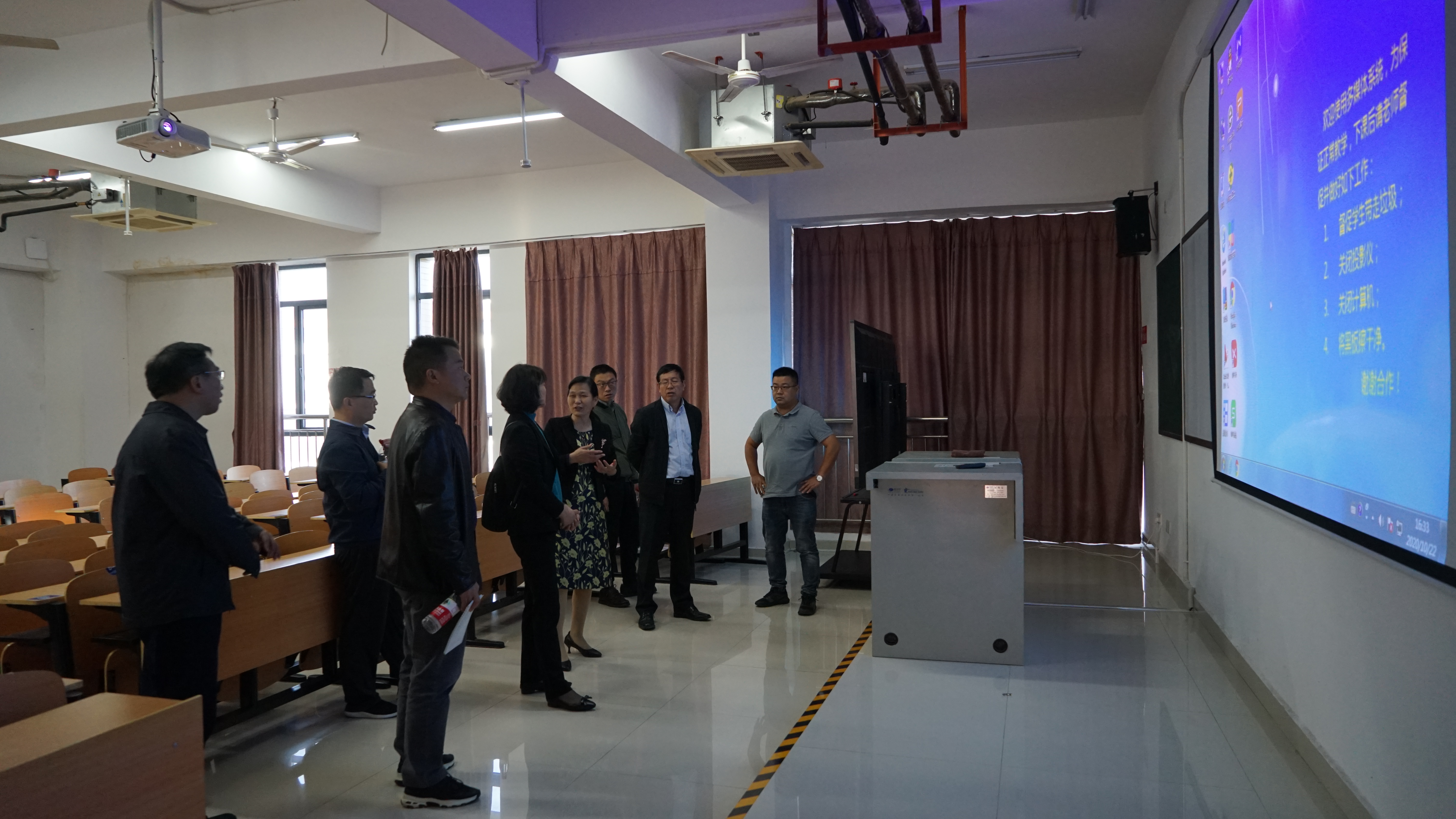 10月22日,教育部职成司教学与质量处副处长董振华,教育部职业院校信息化教学指导委员会主任王均铭,教育部职业院校信息化教学指导委员会副主任姜丽萍,湖南省教育厅职成处副处长周韶峰,中国教育电视台频道中心副主任刘婷以及记者刘润彭、黄雅森等来我校调研2020年全国职业院校技能大赛教师教学能力比赛准备工作。学校党委书记王雄伟、校长陈超、副校长隆平及党政办、教务处、后勤处、学工处、宣传部等部门相关人员陪同调研。
