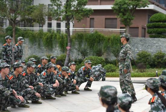 军训教官进行分列式表演