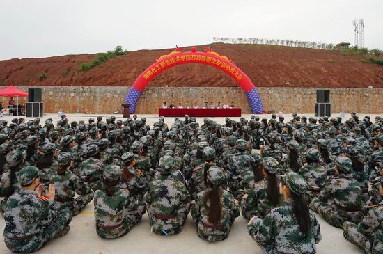 凉风送爽,秋意浓浓,9月12日下午4点,3000余名2015级新生在湖南化工职业技术学院新校区篮球场举行军训动员大会。学院副院长王为做军训动员报告,国防科技大学指挥官任通发表讲话,各系部主要负责人和新生辅导员等参加典礼。国防科技大学教官进行精彩的分列式表演。以下是一组图片报道。(宣传部 钟岩亮)
