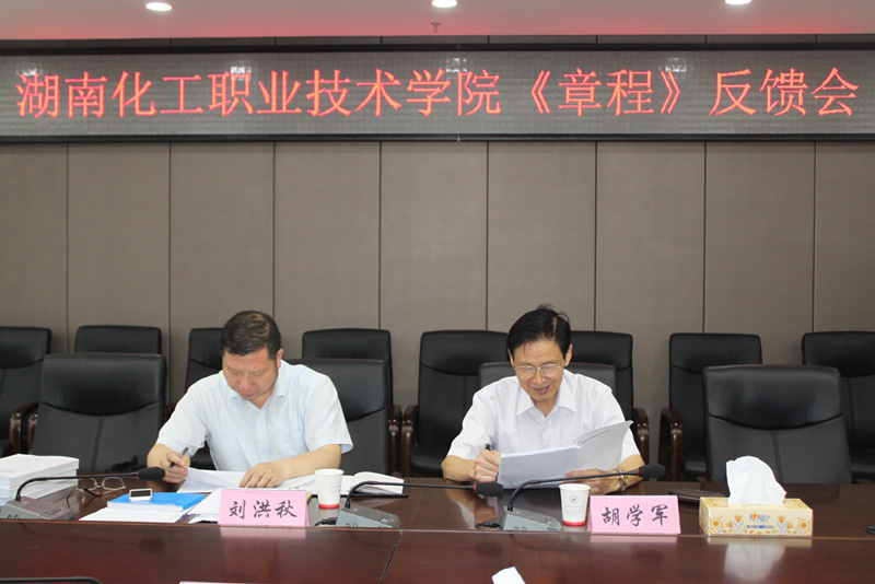 刘望院长代表学院对胡书记和刘处长的亲临指导表示感谢,并表示,学院高度重视《章程》建设工作,《章程》是学院的办学准则,是基本法,学院一定按照相关政策法规和专家的建议进一步完善好《章程》的建设工作,并加大宣传力度,将依法办学、依法治校的理念落到实处。