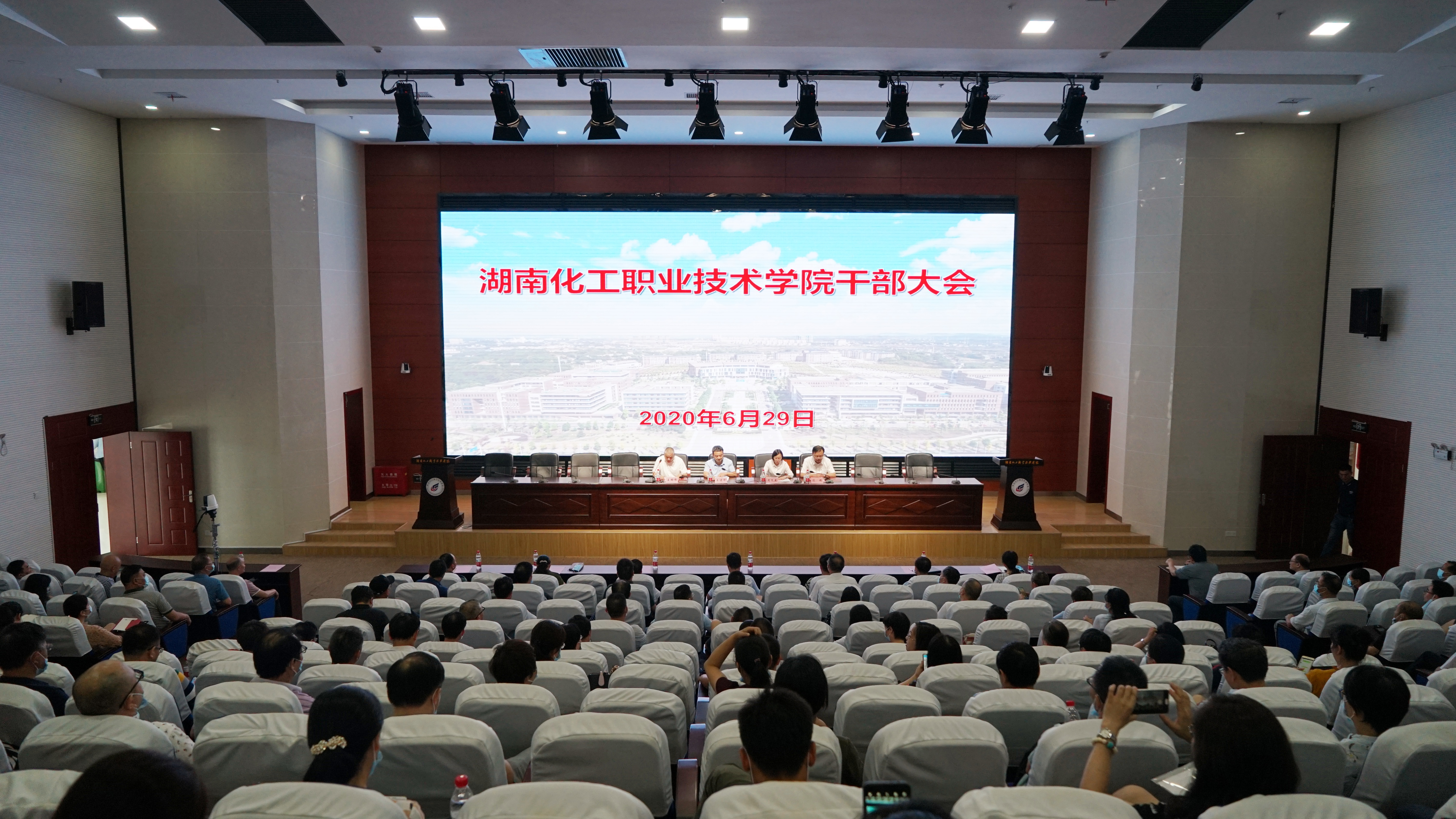 6月29日下午,学院召开干部大会宣布省委关于学院党政主要领导的任免决定。湖南省教育厅党组成员、湖南省委教育工委副书记王建华同志,湖南省教育厅人事处副处长周文燕同志出席会议?;嵋橛赏跣畚爸鞒?。学院领导班子成员、中层正职、具有副高以上职称在职人员以及市级以上党代表、人大代表、政协委员、民主党派主要负责人参加了会议。