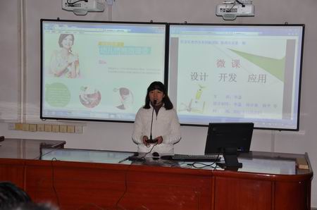 随后,思想政治课部的教研室主任、信息化教学探究创新团队成员李菡老师作了关于“微课设计、制作与应用”的专题讲座,李菡老师通过大量的实例展示,对“什么是微课,微课对教学的意义及微课的设计与开发”进行了阐释,重点展示了微课的设计与制作方法。
