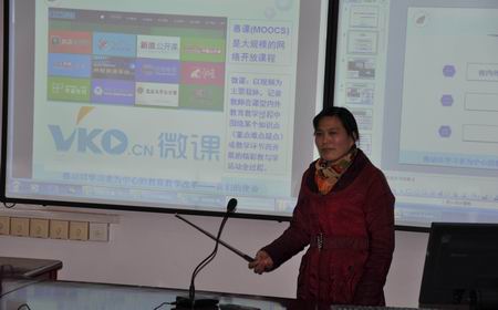 本次培训由教务处副处长田伟军主持,分三个环节进行。首先,隆平教授做“深入学习、开拓创新、争做教学改革先锋——信息化教学探究创新团队工作交流”报告,她重点介绍了省内外信息教学改革新动态、团队工作计划、工作要求和建设目标,为团队今后的工作指明了方向。