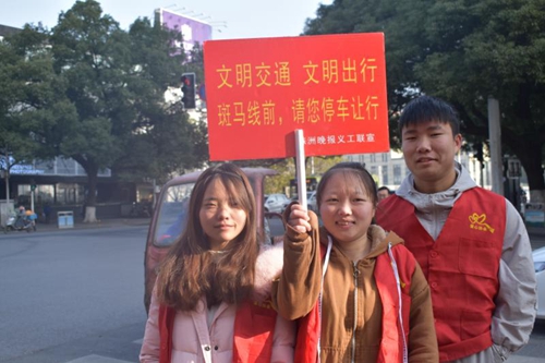 12月17日上午9点,校团委爱心协会及大学生记者团同株洲晚报义工在新华路开展了文明交通劝导活动。