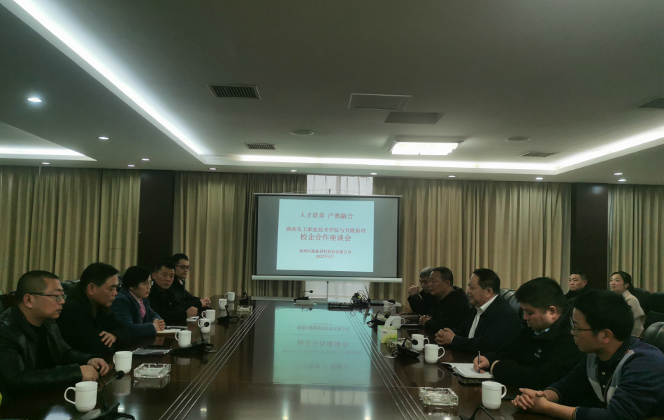 为深化产教融合,完善校企合作育人机制,提高人才培养质量,1月15日,我校与兴隆新材校企合作会议在兴隆新材办公楼五楼会议室召开。参加此次会议的有副校长隆平、自动化与信息工程学院党总支书记许建平、副书记郭浪、自动化党支部部分教师党员和株洲兴隆新材股份有限公司董事长唐建强及公司销售总监、生产车间主任、自动化20301和营销20301企业班部分学员?;嵋橛尚斫ㄆ街鞒?。
