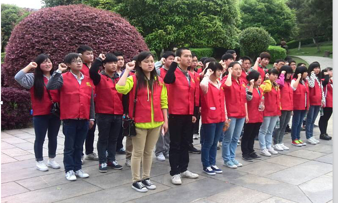 最后,同学们来到烈士墓碑前,为烈士们献上一束美丽的鲜花,并面对墓碑举行爱国宣誓仪式。爱心协会副会长严欢同学宣读致辞,致辞毕,大家共同低头向烈士们默哀三十秒钟。紧接着,全体同学高举右拳在墓前立下了庄严的宣誓,以示对先烈们最崇高的敬意。宣誓仪式结束后,志愿者代表发表本次活动感言,纷纷表示将弘扬化院爱国精神,树立远大的理想,把心中永远不变的爱国热情化作无处不在的强国行动,唤醒同学们对祖国的热爱和奋发图强的信念。